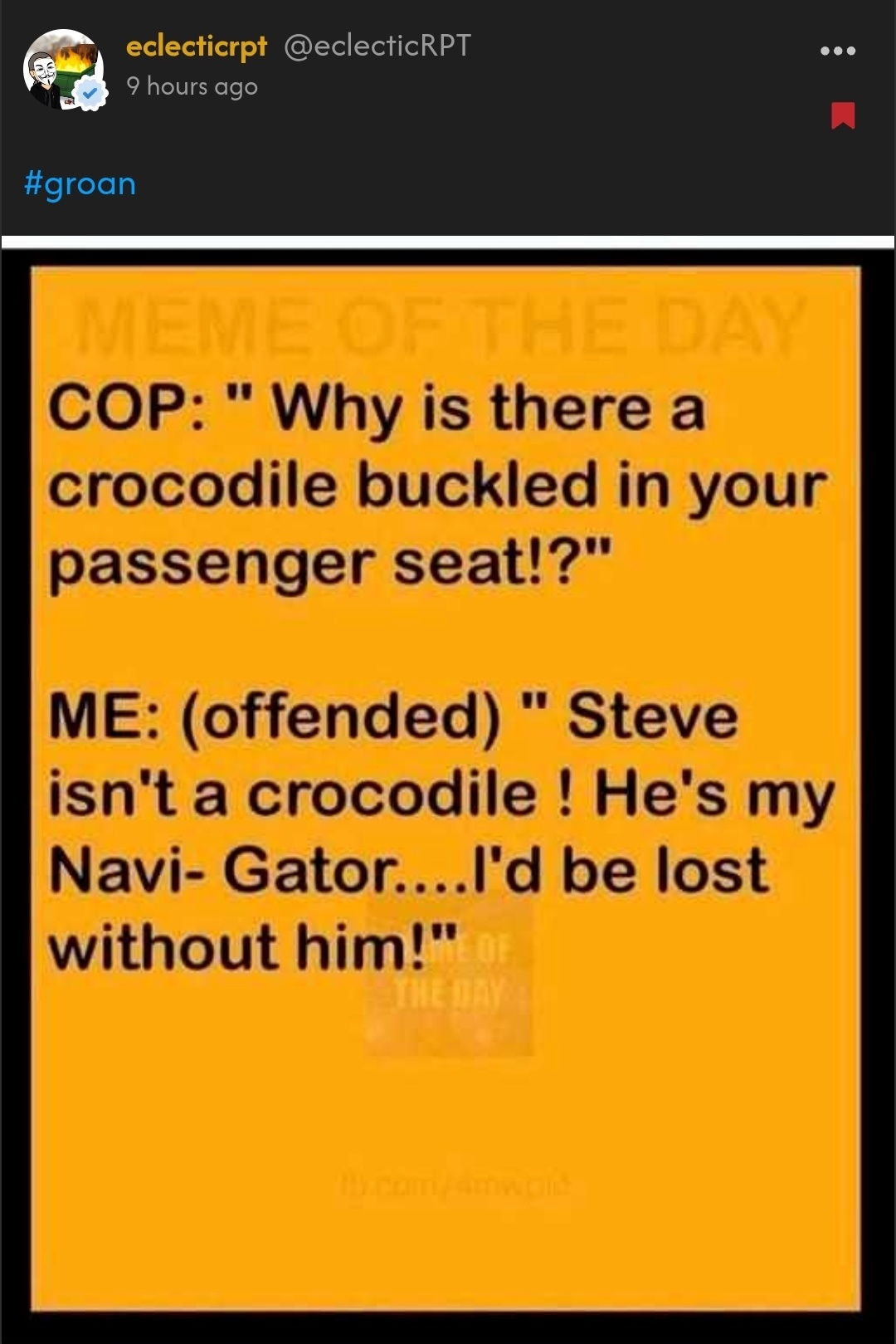 Anyway, there was supposed to be a purpose to the post... Oh, that's it - terrible groaners. Pick your "favourite" I guess....