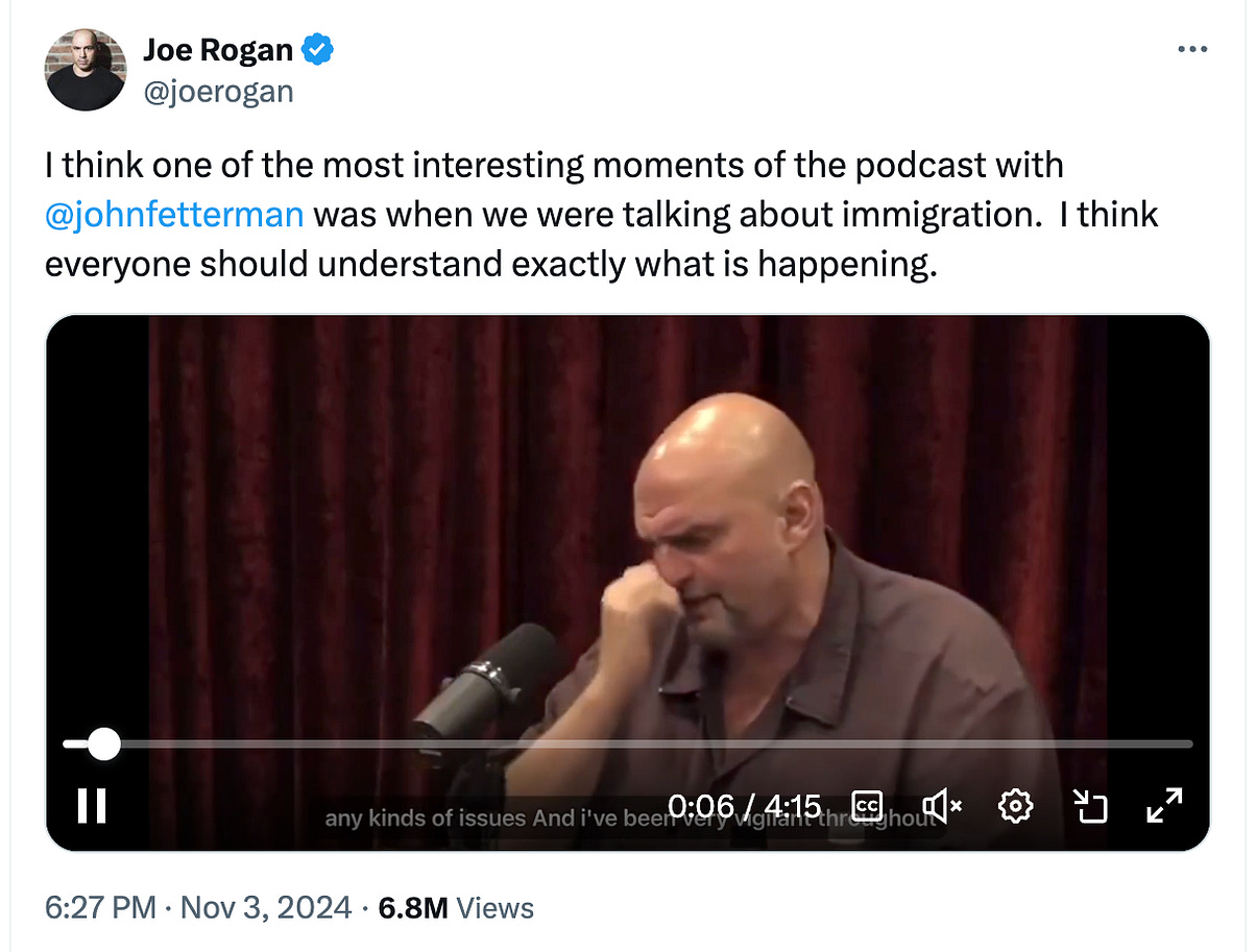 Take a look at this four-minute clip from Joe Rogan’s interview with Sen. John Fetterman: