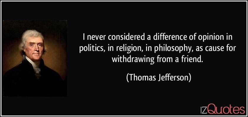 "I never considered a difference of opinion in politics, in religion, in philosophy, as cause for withdrawing from a friend."