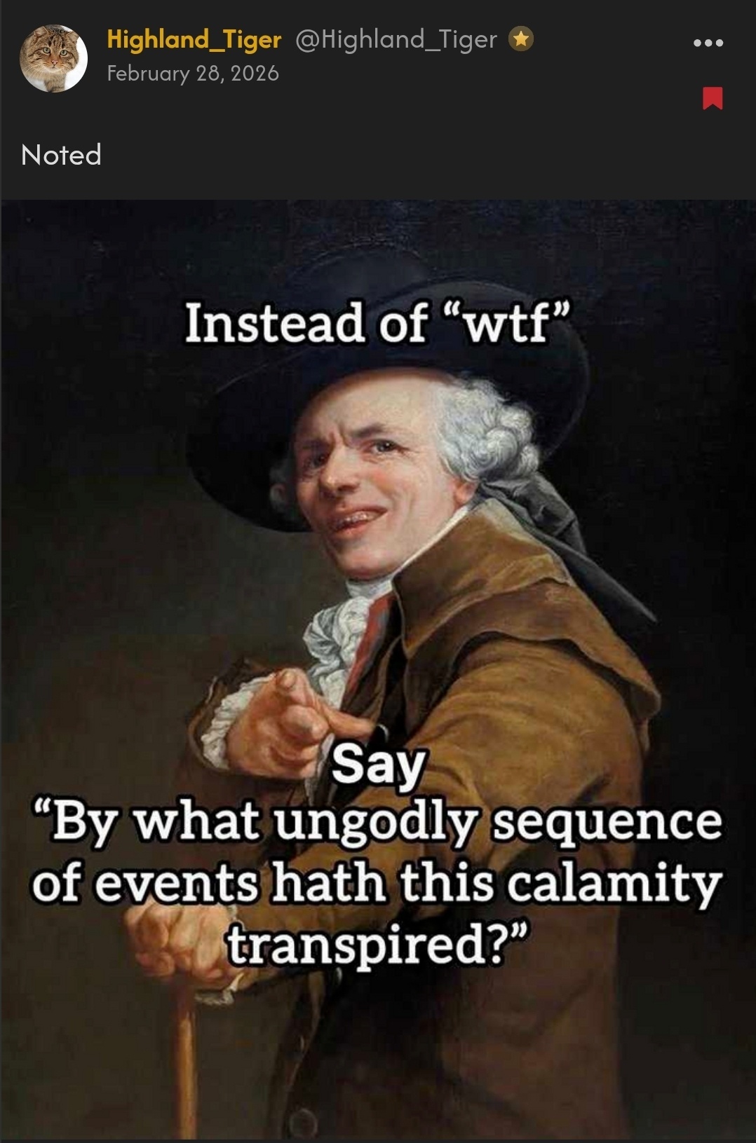 What on earth does that mean? This tweet breaks down the slang for you, my fellow Olds. Meanwhile, enjoy Charlie Cooke’s Wodehousian take on the matter: