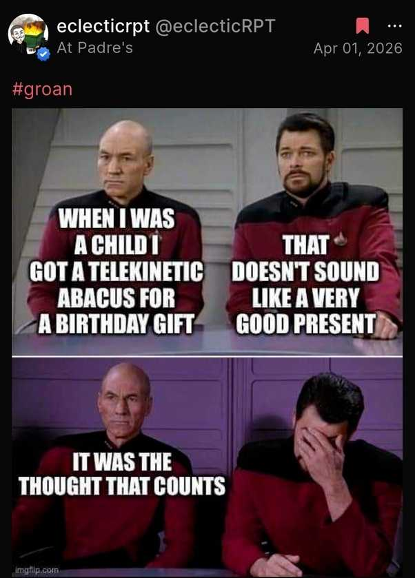 Did you watch the Super Bowl? I didn’t. Could not possibly care less. But TPUSA tried to counterprogram the Bad Bunny halftime show. Didn’t work. Thus: