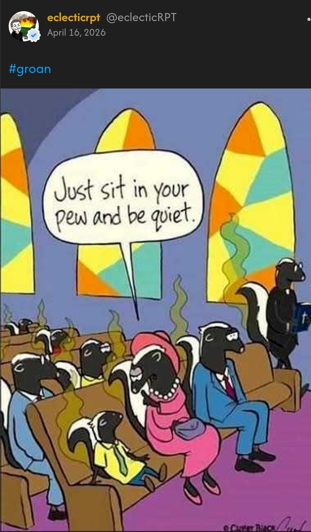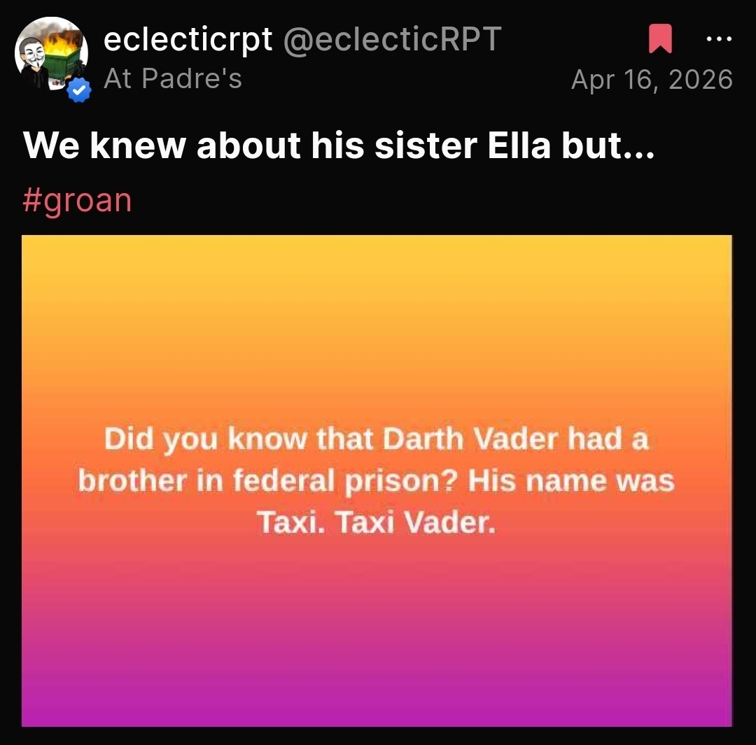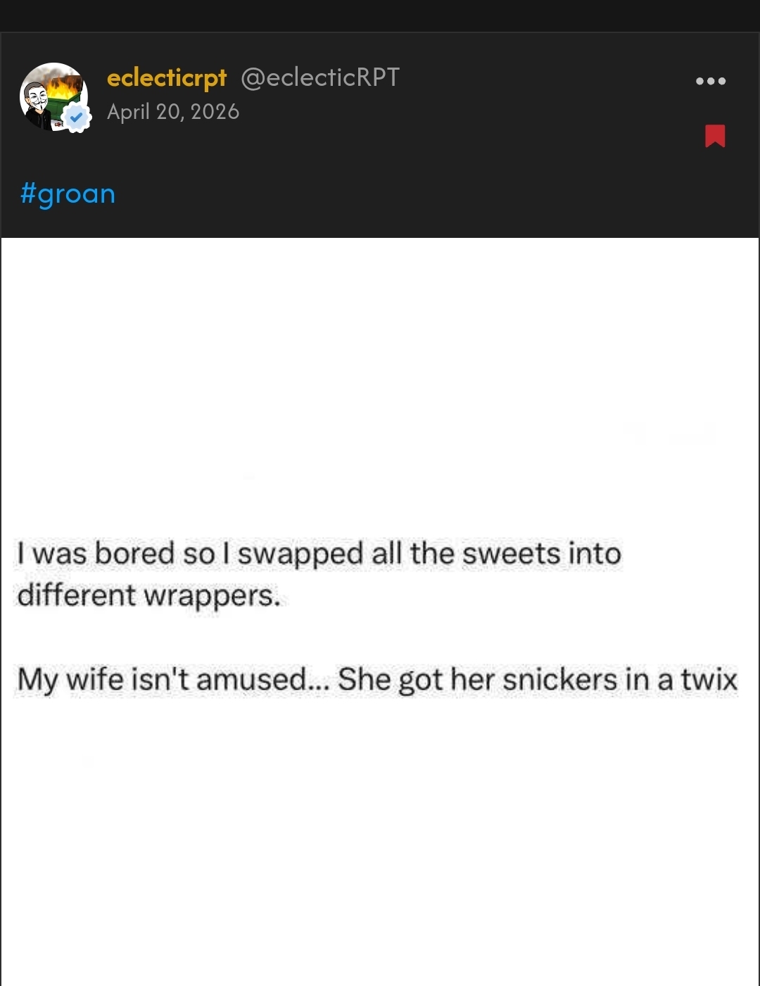 Lastly, let us raise a goblet to @eclecticrpt, crowned victor of this week’s #Groan of The Week! Yet, which of thy fresh crimes against comedy shall seize the prize anon? Only the gathered folk here may cast their judgment!